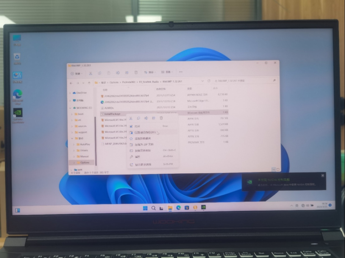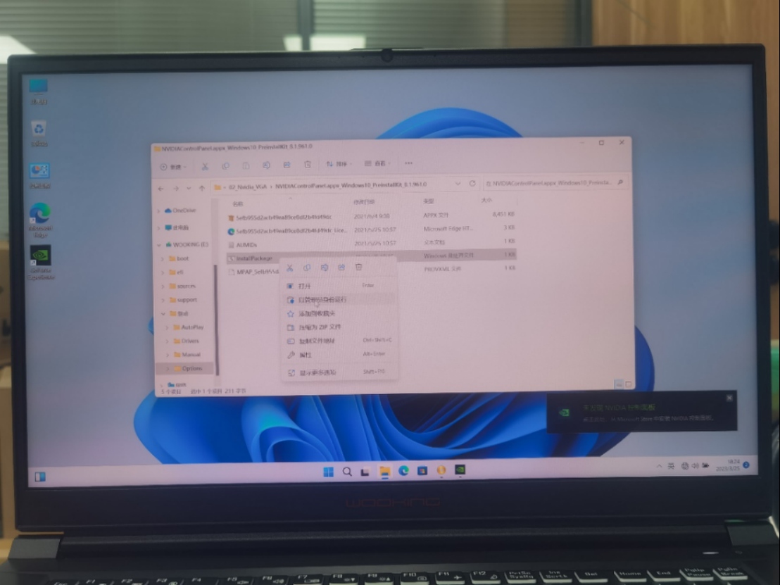 - 返回点击02_Nvidia_VGA,进去到最里面,找到InstallPackage批处理文件右击使用以管理员身份运行,窗口会自动关闭消失