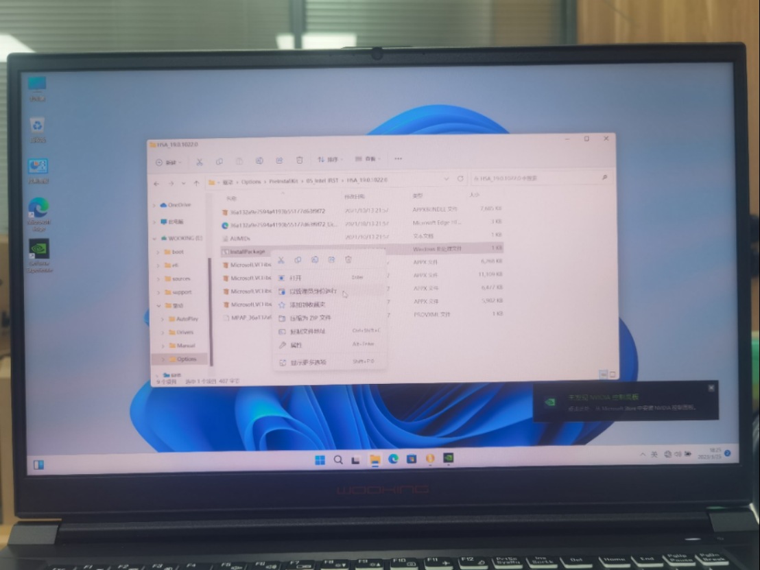 - 返回点击05_Intel_IRST,进去到最里面,找到InstallPackage批处理文件右击使用以管理员身份运行,窗口会自动关闭消失